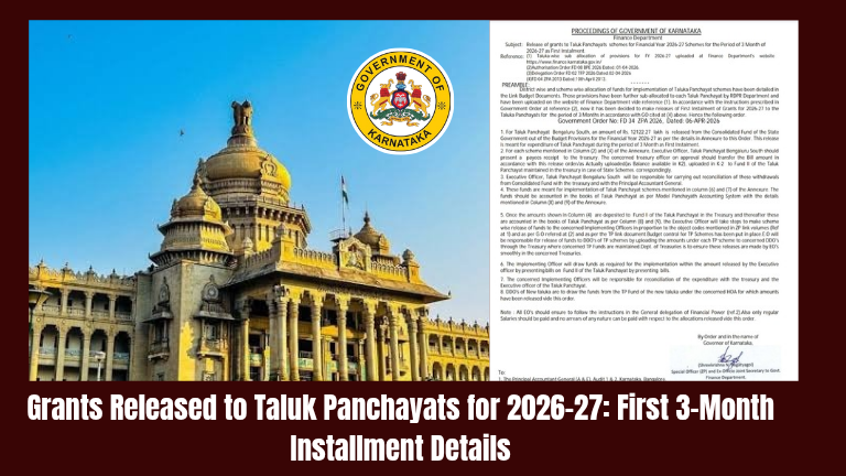 SSLC STUDY MATERIALSGrants Released to Taluk Panchayats for 2026–27: First 3-Month Installment Details mastermitra / April 7, 2026