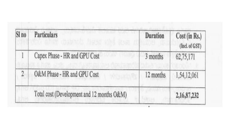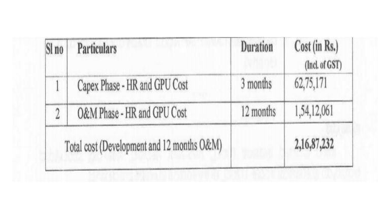 ಮೇಲೆ ಓದಲಾದ ಕ್ರಮಾಂಕ (5)ರಂತೆ, ಇ-ಆಡಳಿತ ಕೇಂದ್ರ (CeG) ರವರು ಶಾಲಾ ಶಿಕ್ಷಣ ಇಲಾಖೆಯ ಎ.ಐ. ಆಧಾರಿತ ವಿದ್ಯಾರ್ಥಿಗಳ ಮುಖ ಚಹರೆ ಹಾಜರಾತಿ ಮೇಲ್ವಿಚಾರಣಾ ಅಪ್ಲಿಕೇಶನ್ 6 ತಿಂಗಳ ಅಭಿವೃದ್ಧಿ ಹಾಗೂ 6 ತಿಂಗಳ ನಿರ್ವಹಣೆ ಮತ್ತು ಮೂಲಸೌಕರ್ಯ ವೆಚ್ಚ ಸೇರಿ ಒಂದು ವರ್ಷಕ್ಕೆ ರೂ.1,99,51,084/- ಗಳ ಪ್ರಸ್ತಾವನೆಯನ್ನು ಸರ್ಕಾರಕ್ಕೆ ಸಲ್ಲಿಸಿರುತ್ತಾರೆ ಮುಂದುವರೆದು, ಇ-ಆಡಳಿತ ಕೇಂದ್ರ (CeG) ರವರು ಶಾಲಾ ಶಿಕ್ಷಣ ಇಲಾಖೆ ಮತ್ತು ಶಾಲಾ ಶಿಕ್ಷಣ ಇಲಾಖೆ (ಪದವಿ ಪೂರ್ವ) ಎರಡನ್ನೂ ಒಳಗೊಂಡಂತೆ 15 ತಿಂಗಳಿಗೆ ರೂ. 2,16,87,232/- (ಜಿ.ಎಸ್.ಟಿ. ಒಳಗೊಂಡಂತೆ) ಗಳ ಪರಿಷ್ಕೃತ ಪ್ರಸ್ತಾವನೆಯನ್ನು ಈ ಕೆಳಗಿನಂತೆ ಸಲ್ಲಿಸಿದೆ.