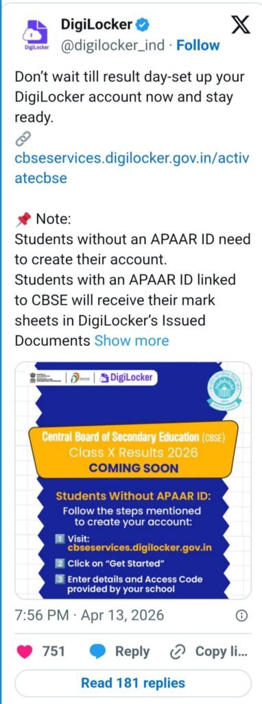 ವಿದ್ಯಾರ್ಥಿಗಳು DigiLocker ಮೂಲಕವೂ ತಮ್ಮ ಡಿಜಿಟಲ್ ಅಂಕಪಟ್ಟಿಯನ್ನು ಪಡೆಯಬಹುದು. ‘APAAR ID’ ಅಥವಾ ಶಾಲೆಯಿಂದ ನೀಡಲಾದ 6 ಅಂಕಿಯ PIN ಬಳಸಿ ಲಾಗಿನ್ ಆಗಿ ಪ್ರಮಾಣಪತ್ರಗಳನ್ನು ಡೌನ್ಲೋಡ್ ಮಾಡಬಹುದು.