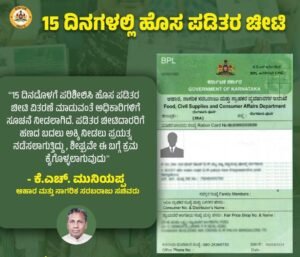 ರೇಷನ್ ಕಾರ್ಡ್ ರದ್ದಾದವರಿಗೆ ಮತ್ತು ಹೊಸದಾಗಿ ಬೇಕಾದವರಿಗೆ ಸಚಿವ ಕೆ.ಹೆಚ್. ಮುನಿಯಪ್ಪ ಅವರು ಮಹತ್ವದ ಮಾಹಿತಿ ನೀಡಿದ್ದಾರೆ. ಯಾರು ಹೊಸದಾಗಿ ಬಿಪಿಎಲ್ ಕಾರ್ಡ್ಗೆ ಅರ್ಜಿ ಸಲ್ಲಿಸುತ್ತಾರೋ, ಅಂತಹ ಅರ್ಹ ಫಲಾನುಭವಿಗಳಿಗೆ ಕೇವಲ 15 ದಿನಗಳ ಒಳಗೆ ಕಾರ್ಡ್ ವಿತರಣೆ ಮಾಡಲಾಗುವುದು ಎಂದು ಭರವಸೆ ನೀಡಿದ್ದಾರೆ.